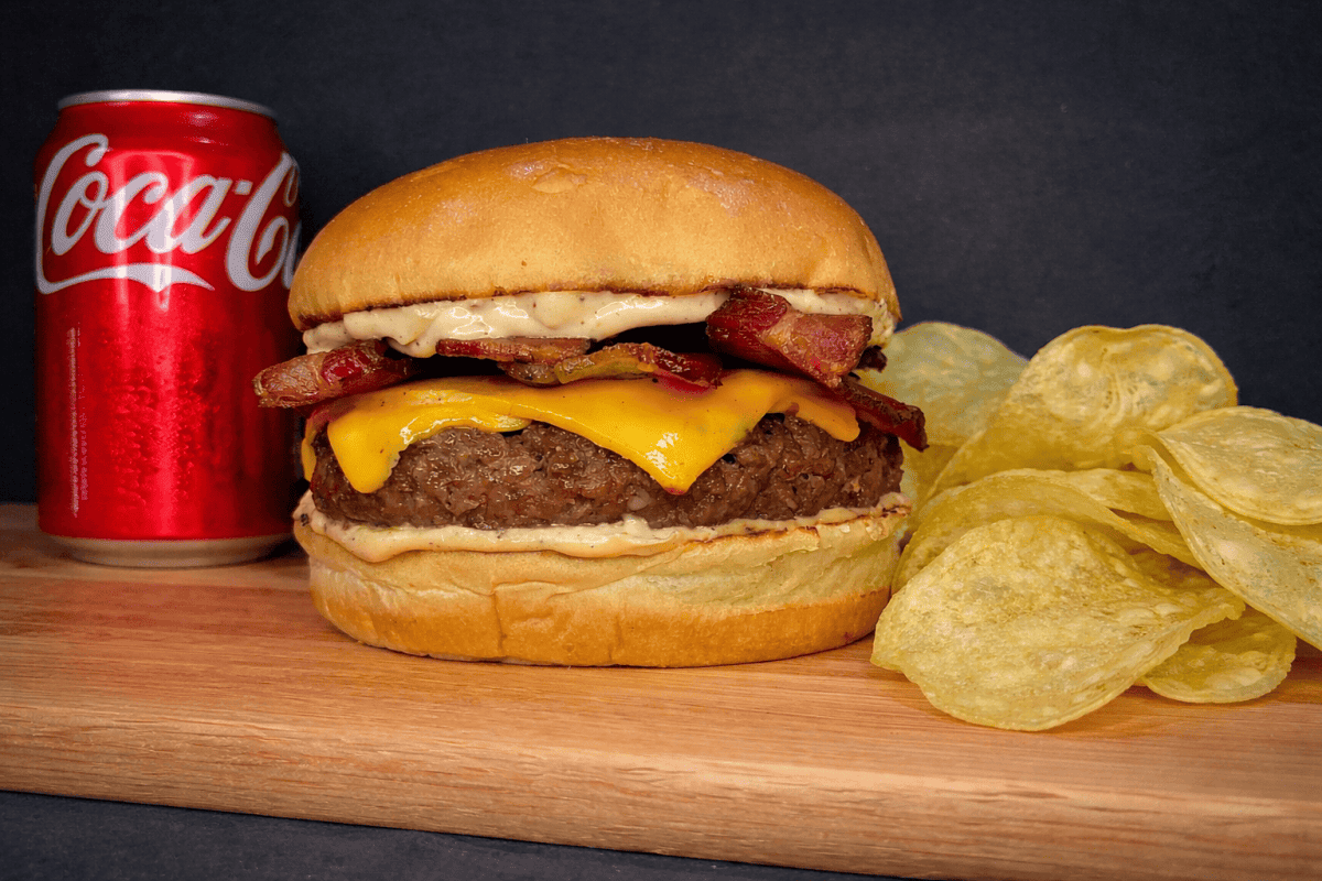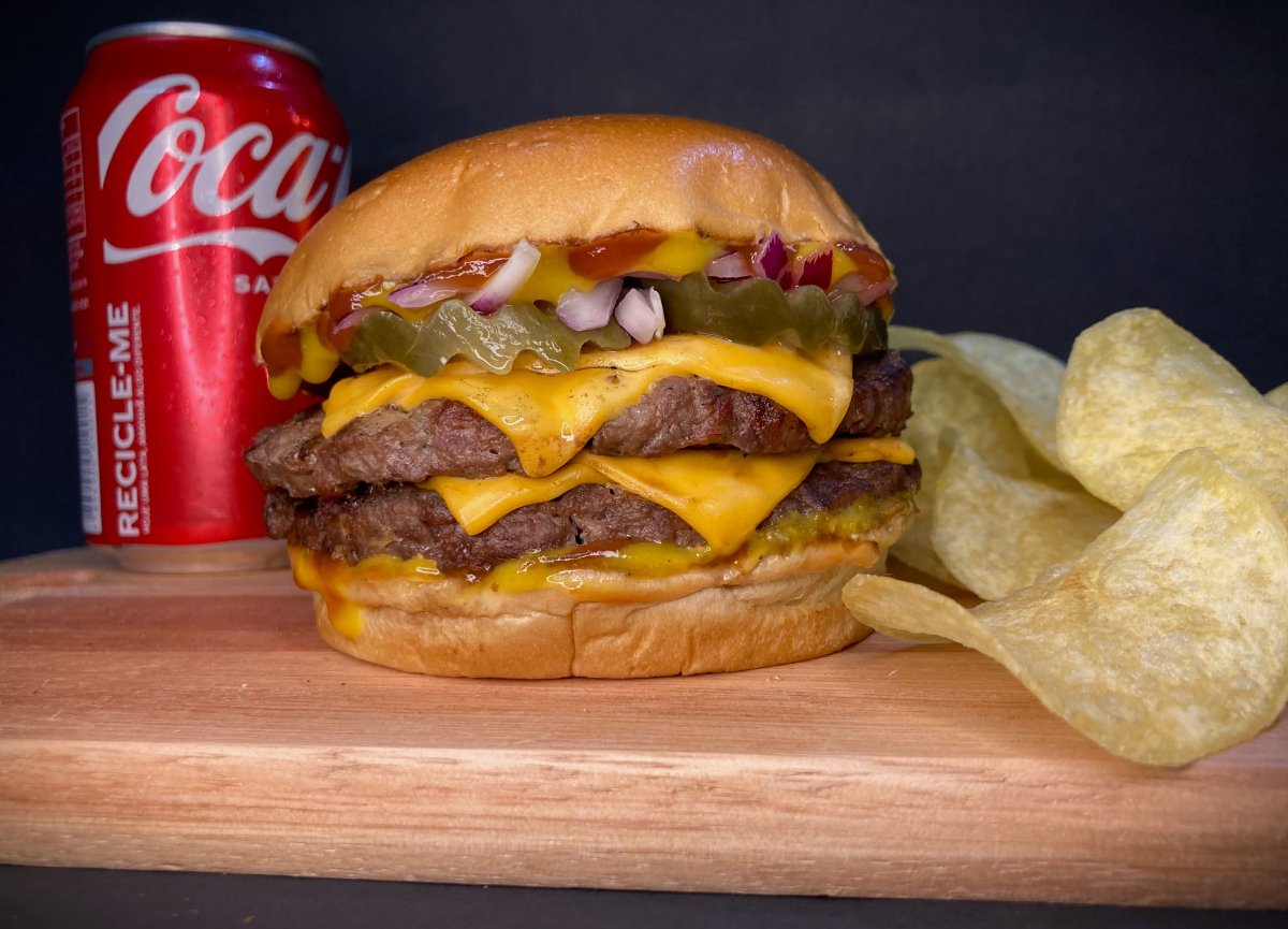 Pão australiano, hambúrguer de 100g, queijo cheddar, maionese da casa e molho barbecue.