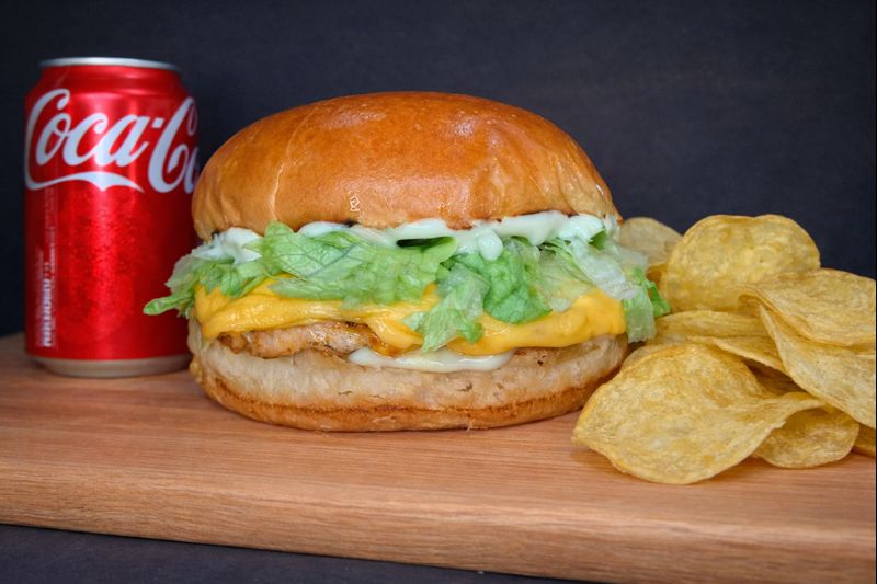 Pão brioche, hambúrguer de frango de 100g, queijo prato, alface americana e maionese especial.