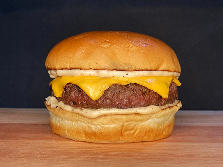 Pão australiano, hambúrguer de 100g, queijo cheddar, maionese da casa e molho barbecue.