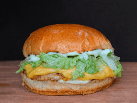 Pão brioche, hambúrguer de frango de 100g, queijo prato, alface americana e maionese especial.