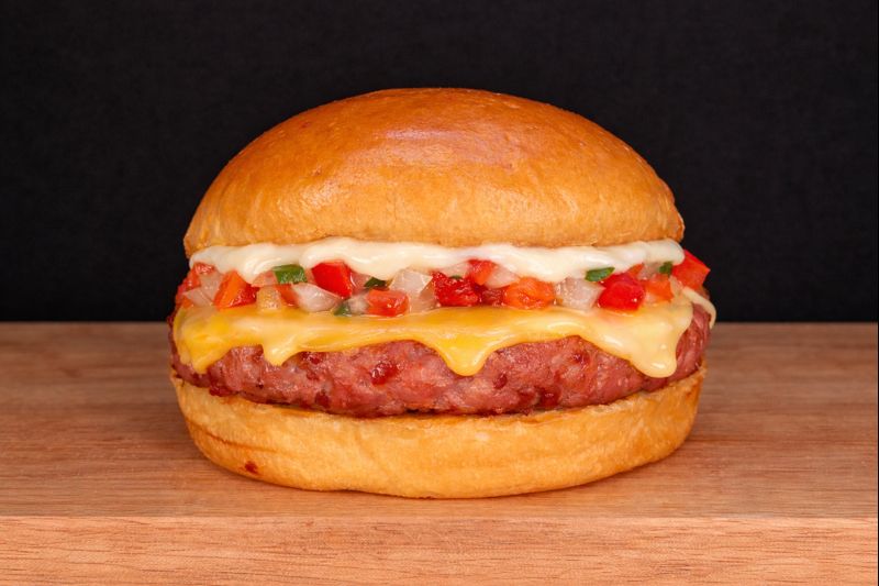 Pão brioche, hambúrguer de linguiça toscana de 160g, queijo prato, vinagrete e maionese especial.
