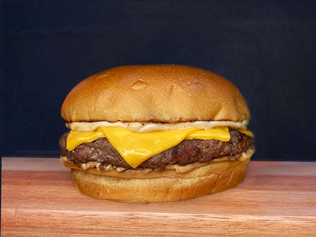 Pão brioche, hambúrguer de 160g, queijo cheddar e maionese da casa.